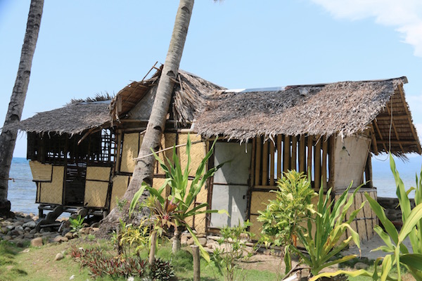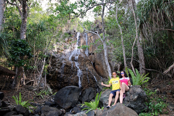 Fuimos a visitar la Cascada de Sabang, es una pequeña caída de agua que cae sobre unas rocas. Para llegar hasta el lugar hay que ir bordeando la costa, hay que tener cuidado, la costa está llena de rocas de todos los tamaños, se recomienda llevar un calzado cerrado y no resbaladizo, si no quieres sufrir una lesión. Por el camino hay casas de lugareños, alguna están construidas de bambú y palmeras como está, en otras se pueden ver los dormitorios, como en la fotografía de abajo a una familia durmiendo.