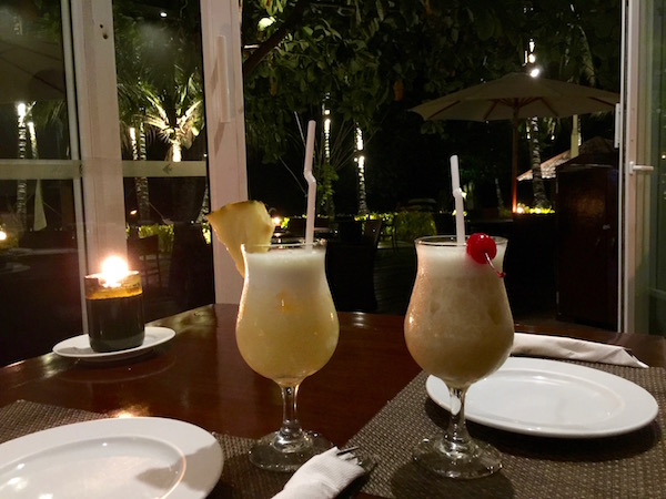 Cenamos en el hotel, pedimos una pizza de vegetales y de bebida dos cócteles de fruta. Pagamos un total de 882 pesos filipinos (14,48 € aprox.) Terminada la comida volvimos a la habitación para descansar.