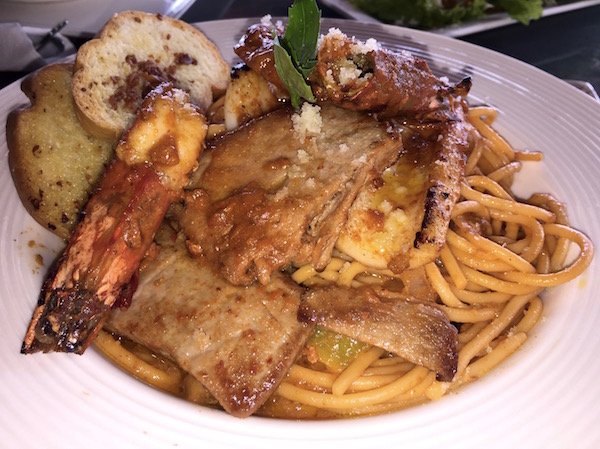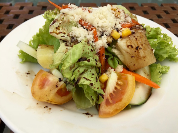 Volvimos al hotel para almorzar, estos días en la playa iban a ser terribles, no íbamos a ir con unos kilos de más. Almorzamos en el hotel una ensalada de salmón, dos platos de pastas, de postre, unas porciones de sandía, de bebida, una coca cola, una jarra de agua. Pagamos un total de 1.900,73 pesos filipinos (31,19 € aproximadamente).
