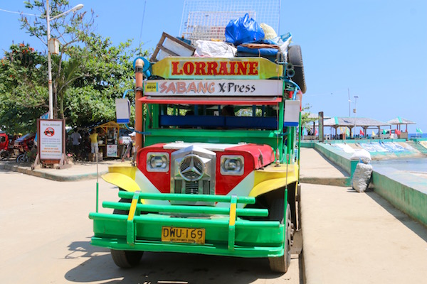 A nosotros vinieron a recogernos el personal del Hotel Sheridan Beach Resort, en el que nos hospedaríamos. En el precio de tres noches nos incluía traslados+habitación+desayuno. Pagamos un total de 444 €. Hospedaje de cuatro estrellas. El teléfono de contacto es: 639173066984. La web: http://www.sheridanbeachresort.com La dirección es Sabang Beach, Cabayugan, Puerto Princesa, Palawan, Filipinas. Debido a que el hotel se encuentra a más de 2 h del aeropuerto, este ofrece a sus huéspedes el traslado gratis. Nos subimos y comenzó el viaje, nos ofrecieron una botella de agua mineral a cada uno, ¡qué atentos!, ya no la habían cobrado seguro. El camino se nos hizo algo largo y porque llevábamos al piloto ¡Fernando Alonso!, iba a todo lo que daba la furgoneta, se pasaba todo el rato en el lado izquierdo de la carretera, adelantaba a todo. Solo frenaba bruscamente porque las gallinas, gallos y perros se nos cruzaban por el camino y había que frenar para dar paso a ellos. Teníamos cansancio de todo el día y la carretera no es muy buena, llena de curvas, baches, etc. El paisaje que podíamos contemplar por la ventanilla de la furgoneta era naturaleza lleno de árboles, montañas, rocas y en algunos tramos veíamos el mar, además de poder ver puestos de los lugareños de frutas, verduras a los lados de la carretera.