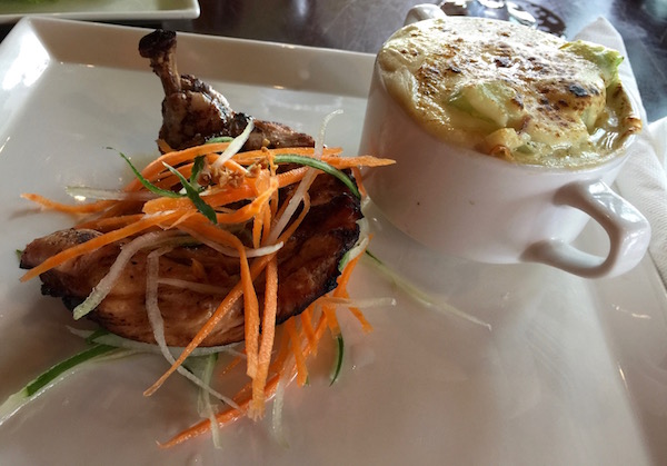 A las 11:00 h de la mañana regresamos a la habitación para ducharnos e ir a hacer el check-out. Una vez hecho nos acomodamos en el bar donde tomamos un coctel y más tarde almorzamos, pedimos un plato con un muslo de pollo y para el otro un plato de espagueti con frutos de mar, de postre un plato con porciones de sandía, de bebida una coca cola y un coco. Pagamos un total de 1777,73 pesos filipinos (29,18 € aproximadamente).