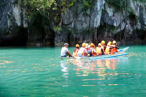 «Nos fuimos caminando hasta el puerto de Sabang, allí se encuentra la oficina del puerto, entramos para rellenar un formulario y registrarnos. Compramos la entrada en tour regular para visitar el Parque Nacional del río subterráneo de Puerto Princesa. Subimos en una embarcación junto a 6 personas más, éramos un total de 8 personas, la capacidad es para 6 personas, pero había overbooking ¡Vamos íbamos comprimidos! Nos hicieron colocar un chaleco naranja reflectante por motivos de seguridad.»