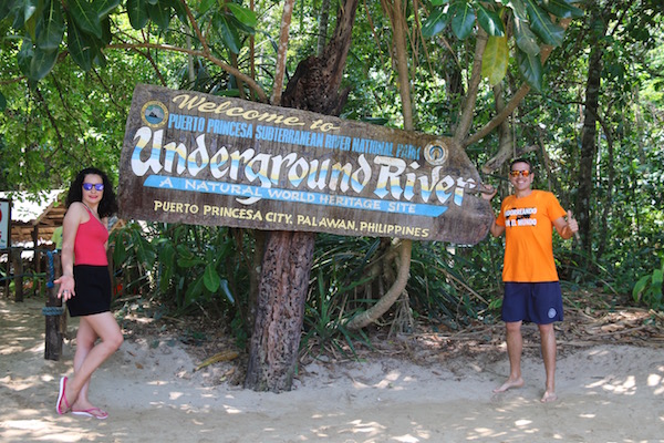 En un trayecto de 20 minutos ya estábamos en el Río Subterráneo de Puerto Princesa, bajamos de la embarcación y lo primero que nos encontramos fue ese cartel donde ponía: bienvenidos a Puerto Princesa, al Parque Nacional del río subterráneo “Underground River”