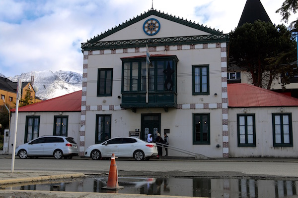 Terminada la visita nos fuimos hasta el Museo del Fin del Mundo. Este edificio data de 1903, el museo abrió al público en 1979, cuenta con cinco salas, dispone de una biblioteca y tienda de regalos. Muestra exposiciones desde la época precolombina hasta el siglo XX. Horario de visitas: en temporada alta de 9:00 h a 20:00 h de abril a septiembre de 12:00 h a 19:00 h, las visitas guiadas son a las 11:00 h 14:00 h 16:00 h y 18:00 h, tienen una duración de 1 h La página web: https://mfm.tierradelfuego.gov.ar La dirección es Avenida Maipú 173.