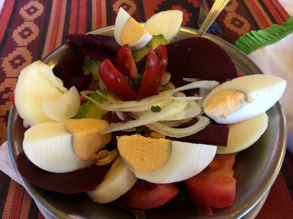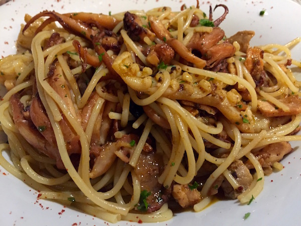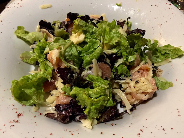 Decidimos cenar en el mismo hotel, estábamos agotados de todo el día y el alojamiento que escogimos se localizaba alejado del centro de la ciudad. Cenamos como entrante una ensalada de salmón, como plato principal un plato de espagueti frutos de mar y para el otro un plato de espagueti, con tomate al grill, aceitunas y nueces. Como bebida tomamos dos botellas de agua mineral sin gas. Pagamos un total 693 pesos argentinos (34,64 € aproximadamente). La comida estaba bastante buena, pero para nuestro gustó la habían cocinado con demasiado aceite, en el plato se podía ver una gran cantidad de este.