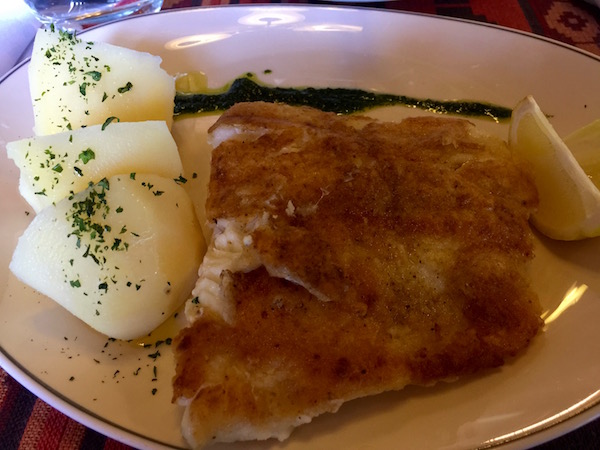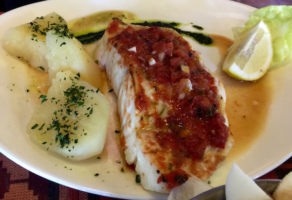 Almorzamos en el Restaurante Tía Elvira, es muy famoso en la zona, (sus platos estrella son: la centolla, merluza negra, trucha) además dispone de más variedad en pescados, carnes, etc. Decidimos ir a probarlo. De aperitivo nos sirvieron un paté de pescado con pan, como entrante, nos pedimos una ensalada completa, de planto principal, una merluza negra al grill y para el otro un plato de merluza negra a la provenzal, de bebida 2 botellas de agua sin gas, de postre un café con leche y otro café solo. Pagamos un total de 1.260 pesos argentinos (78 € aproximadamente). En este precio está incluida la propina del 10%. En este restaurante hay que añadirle a la cuenta entre un 10% a un 15% de propinas, es obligatorio en este local. La comida estaba deliciosa y con una buena presentación, es cierto que el lugar no es muy económico, pero mereció la pena ir al lugar.