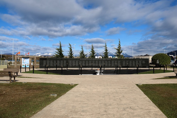Anduvimos unos metros hasta la Plaza Islas Malvinas, en ella hay un Monumento a los Caídos en la Guerra de las Malvinas, fue inaugurado en 1994. En la parte baja del monumento se pueden leer los nombres de los héroes caídos.