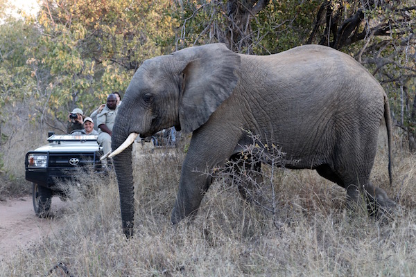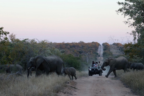 Pudimos presenciar como cruzaban delante de nosotros una manada de elefantes ¡stop!, había que darle paso a la manada si no queríamos acabar con el 4×4 patas arriba. Los elefantes son los mamíferos más grandes del mundo al nacer, pueden pesar 130 kg y cuando son adultos hasta 10.000 kg. Las hembras dan a luz a una cría cada tres años, es el animal con la gestación más larga de todos 23 meses. Se alimentan de hierbas, plantas y cortezas de árbol. Consumiendo hasta 250 kg en un día. Su esperanza de vida es de 60 a 75 años. La trompa de este animal no es solo utilizada para alimentarse, cuando se siente amenazados la utilizan para coger y arrojar elementos en forma de defensa. Siendo su depredador el ser humano por la caza ilegal y el tráfico de marfil. Los colmillos pueden llegar a ser hasta 3 metros de longitud, pesando 100 kg.