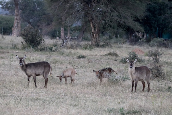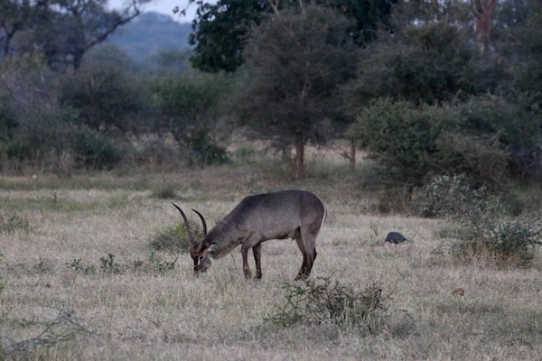 Continuamos con el safari hasta encontramos un rebaño de Kobus ellipsiprymnus, antílope acuático, su cuerpo y cuello es largo, pero teniendo unas patas algo cortas, su altura es entre 1 y 1,35 metros, pesando el macho de 200 a 300 kg, en cambio, la hembra pesa de 160 a 200 kg. El pelaje es largo, teniendo unas pequeñas melenas en el cuello, su color va desde grises hasta marrones, tomando tonalidades oscuras con el paso de la edad. El macho tiene cuernos anillados hasta llegar a tener 1 metro de longitud. Este animal es un buen nadador, aunque es tímido y asustadizo. La hembra tienen una gestación de entre 270 a 285 días, dando a luz a una sola cría. Sus depredadores son leopardos, leones y hienas.