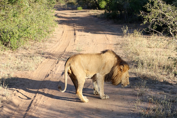 ¡Ahora sí que estábamos disfrutando!, apareció en el camino un león, paramos el 4×4 para tomar unas fotografías y observarlo, lo tuvimos a nada a menos de 1 metro de nosotros, paseando por delante de nosotros, aun lado, tumbado, vamos lo contemplamos de varias perspectivas ¡Qué emoción! El león es un mamífero carnívoro de la familia de los félidos. El macho es el jefe en una manada, es temido por su manda y siendo el primero en comer cuando hay presa, las hembras son las que le cazan. Es un animal que pasa mucho tiempo durmiendo unas 20 h al día. Su función es proteger a su manda de ataques de depredadores y enemigos.
