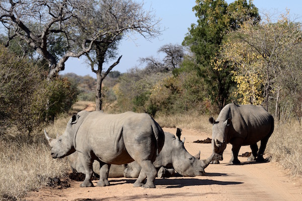 A los lejos vimos unos animales, parecían elefantes por el color de piel, ¡pero estábamos equivocados!, nos fuimos acercando hasta la zona, y pudimos comprobar que era una manada de rinocerontes, dos, no tres tampoco, eran en total cuatro. Resulta difícil poder verlos, ya os decimos que cuatro juntos es inimaginable, Calton y el Ranger estaban alucinando, pero nosotros aún más. Es un animal que se encuentra en peligro de extinción debido a su gran depredador, el ser humano, porque su cuerno contiene queratina, la medicina china lo considera como un remedio utilizado para tratamiento de enfermedades. El rinoceronte pertenece a la familia perisodáctilos, solitario y territorial que a veces forman grupos pequeños, un adulto puede llegar a pesar hasta 1 tonelada. Es herbívoro, se alimenta de hierbas, árboles, ramas, plantas, etc., durante el amanecer y atardecer, evitando las horas de calor, es un animal que no tiene un buen campo de visión, le resulta difícil distinguir lo que está ocurriendo, por eso suele atacar para defenderse. En cambio, su olfato y oído los tiene muy desarrollados. Puede sobrevivir sin beber agua durante 5 días. Es el segundo animal terrestre más grande detrás del elefante. Alcanza una velocidad de 45 km/h en distancias cortas. Duerme de forma acostada o de pie durante 8 h al día en intervalos. La hembra da a luz en un periodo de entre 14 a 18 meses, siendo una sola cría por parto. La esperanza de vida es de 50 años. Estuvimos un rato contemplándolos hasta que fueron desapareciendo de la zona, bueno se quedó uno de ellos echándose una siesta.