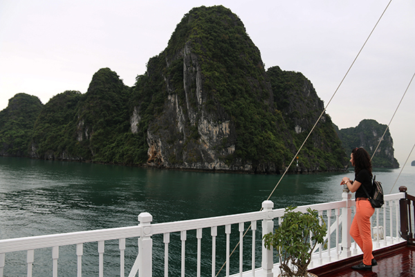 4-La Bahía de Ha-Long se sitúa en el continente asiático, en el país de Vietnam. Desde el 1994 forma parte del Patrimonio de la Humanidad por la Unesco. En 2011 obtuvo el título de una de las 7 Maravillas Naturales del Mundo. Nos fuimos a Hong Gai, a la aldea en la Bahía de Ha-Long. Se localiza al norte del país, a unos 300 km de la ciudad de Hanoi. La bahía de Ha-Long está formada por más de 200 islotes a lo largo de 120 km de costa, con una extensión mayor a 15.000 m². Embarcamos y realizamos un crucero de día completo y noche abordo de un barco. Aunque en este no había ningún tipo de animación a bordo y no disponíamos de televisión e internet, lo pasamos genial contemplado los magníficos paisajes que nos ofrecía la naturaleza. El lugar nos brindaba un paisaje lleno de aguas de color turquesa con esas formaciones rocosas enormes que sobresalían del agua. También tuvimos la oportunidad de ver juncos y sampanes. Hay varias compañías que realizan este tipo de excursión por la bahía. Nosotros pagamos por 1 día y noche 99 dólares americanos por persona (90,94 € aproximadamente). Estas tarifas corresponde al año 2015, cuando nosotros visitamos el lugar. https://andorreandoporelmundo.com/2015/05/andorreando-por-vietnam/
