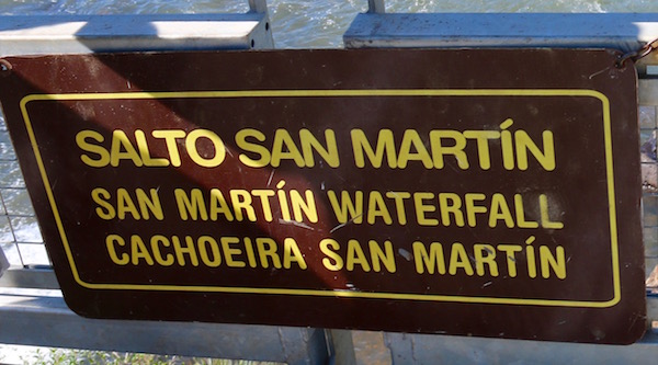 Después de este último salto que hemos nombrado, hay unas pasarelas que cruzan el río Iguazú superior, para poder llegar hasta el salto San Martín, este ofrece las mejores vistas panorámicas de todo el parque, deja divisar en la zona brasileña, elevadores del área Naipi del Parque Nacional do Iguaçú, el hotel Das Cataratas, y de la parte argentina permite ver la torre Tanque, los balcones inferiores y superiores de los circuitos, el hotel Sheraton, y desde lejos deja observar la pasarela que va a la Garganta. Para salir se toma un sendero de pasarelas de 700 metros que recorre los islotes del río Iguazú superior.