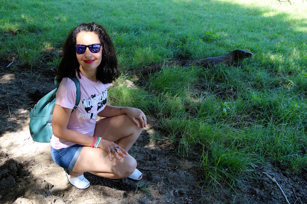 Nosotros visitamos el Parque Nacional de Komodo en la isla de Rinca, donde realizamos una ruta de senderismo y pudimos encontrar el dragón de komodo, es un reptil que está protegido y solo habita en este lugar. Está considerado como el mayor del planeta. Un dragón adulto puede llegar a pesar 70 kg y una longitud de dos a tres metros, tienen lengua amarilla con la que pueden detectar los olores y sabores que hay en el ambiente, son capaces de comerse a su propia cría. Poseen 57 bacterias en su saliva, hay 3 de estas que son tóxicas y son las que causan la muerte cuando muerden. La mordedura no causa la muerte repentina de la presa, sino que pueden pasar varios días hasta que se produzca esta. Eso sí, puede ocasionar la muerte en el instante por un desgarro de sus uñas. Los dragones suelen estar más activos al amanecer y al anochecer. Estos animales tienden a esconderse buscando sombras para permanecer inmóviles a medida que va subiendo la temperatura y la salida del sol.