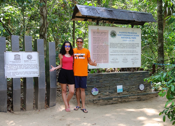 En un trayecto de 20 minutos ya estábamos en el río subterráneo de Puerto Princesa, bajamos de la embarcación y lo primero que nos encontramos fue ese cartel donde ponía: bienvenidos a Puerto Princesa, al Parque Nacional del río subterráneo “Underground River”