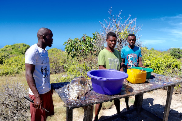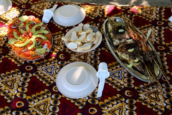 Disfrutamos bañándonos en las increíbles aguas cristalinas, hicimos esnórquel, tomamos el sol, en fin pasamos un día genial. La tripulación de nuestra embarcación era de las etnias sakalava y antakarana, fueron a pescar el pescado y mariscos, que más tarde nos cocinarían para que almorzáramos en una casita de madera, que hay en el lugar. A las 16:00 h de la tarde, emprendimos la vuelta a la playa Ramena.