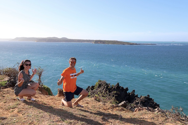 Cuando llegamos a la Playa de Ramena, subimos en un 4×4 para ir a visitar las tres bahías de Diego Suárez: Bahía de los Sakalava, de las Palomas y de las Dunas. Esta bahía tiene un perímetro de 156 km, en ella podemos ver el islote de Pan de Azúcar está considerada como la segunda bahía más grande del mundo, detrás de la de Río de Janeiro. Las playas de estas bahías son de arena blanca y fina, posee unos increíbles fondos marinos. Los amantes de los deportes acuáticos vienen hasta el lugar para practicar windsurf, kitesurf, etc., gracias a los vientos alisios que durante 9 meses al año golpean las tres bahías. También vimos las ruinas de una antigua fortificación, viejos cañones de la época colonial, faros, etc. Además, vimos el primer árbol baobab.