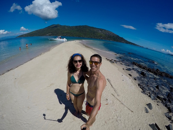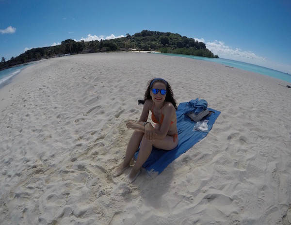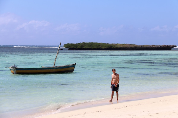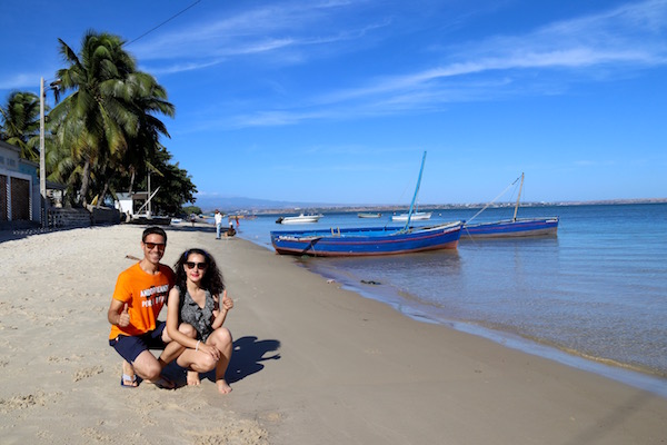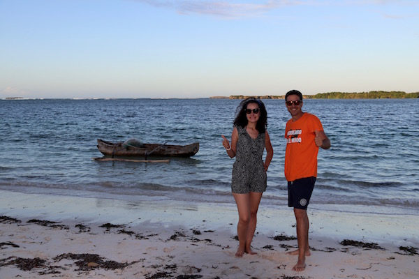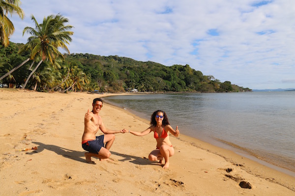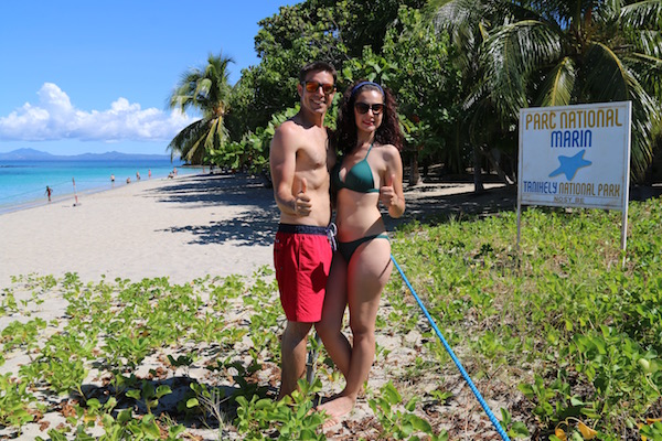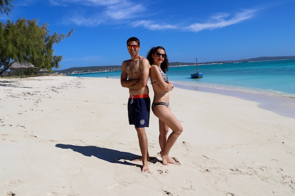 Desembarcamos en Nosy Iranja, como estaba algo baja la marea, decidimos ir caminando por la lengua de arena, tomamos unas fotografías y disfrutamos del lugar, decidimos darnos un baño en esas aguas del mar, que ofrecen un color desde el azul profundo hasta el verde esmeralda. Donde poder practicar esnórquel, buceo, etc. Sergio, tomó el tubo, gafas y aletas, mar adentro en busca de tortugas, en menos de 30 minutos lo tenía de vuelta ¡Venía con un cabreo!, al pobre le habían picado una gran cantidad de medusas ¡Menos mal!, que las marcas le desapreciaron en unas horas.