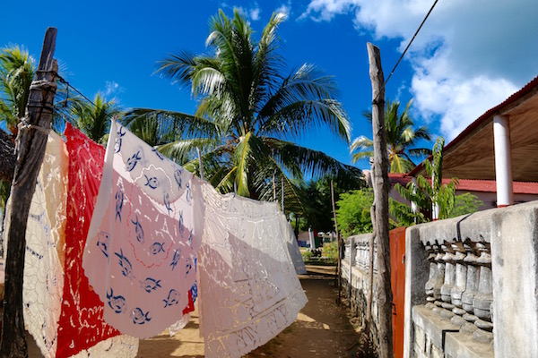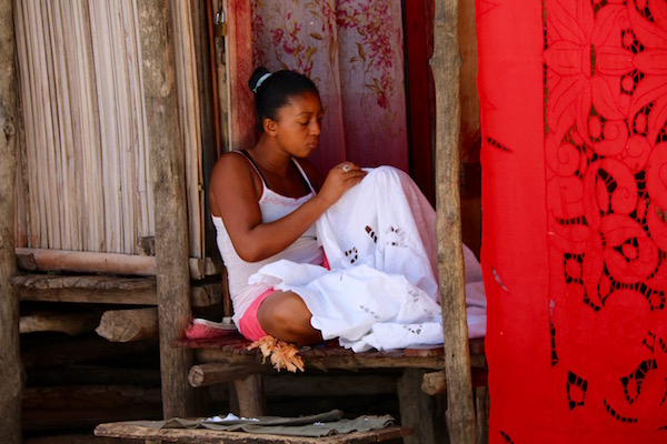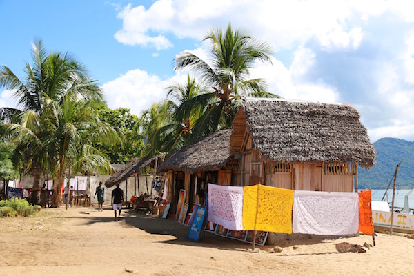Desembarcamos en un pequeño pueblo llamado Ampangorina, es la principal villa de Nosy Komba, llamada coloquialmente “isla de los lémures” también hay otras pequeñas poblaciones en la isla como: Andrekareka, Anjiabe o Antanamonpera. Llamativa porque nada más acceder a ella nos encontramos con cuerdas a ambos lados de las calles donde colgaban manteles bordados artesanalmente, hechos por mujeres del poblado, en sus encajes se pueden ver dibujos como: tortugas, peces, conchas, estrellas de mar, palmeras, etc. También hay pequeñas tiendas donde venden artesanía, recuerdos hechos en madera, pintados, etc. ¡Recuerda!, debes llevar dinero en metálico, eso si, billetes pequeños, es una zona pobre, pueden que no tenga cambio, y te veas obligado a prescindir de comprar ese recuerdo que te gusta. Las tarjetas de crédito no las aceptan.