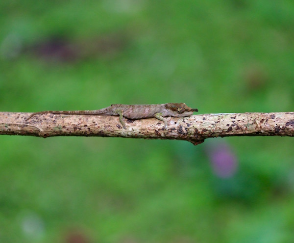 ¡Mirad!, que lagarto nos encontramos el gecko, es una especie de lagarto pequeño, que hay nada más y nada menos que 1.500 subespecies diferentes. La mayoría tienen un color verde llamativo con tonalidades de manchas en tonos coloridos, su vientre es de color beige, con cola larga y delgada, ojos grandes, su longitud puede ser desde 60 cm a 1,6 cm. Normalmente, es nocturno y caza durante la noche, se alimenta de insectos, frutas, etc. Para comunicarse unos con otro emiten vocalizaciones. Es un animal ovíparo.