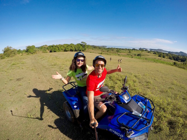 Nos despertamos sobre las 8:00 h de la mañana, nos dimos un festival en el desayuno, y una vez acabado, alquilamos un quad en el propio hotel, para recorrernos la isla. Pagamos 179.834,91 ariary malgache (50 € aproximadamente). Fuimos hasta el Monte Passot donde obtuvimos unas vistas de 360ºC, está rodeado de los lagos de cráteres. Pasamos por plantaciones de mango, plátanos, piñas, etc. También tuvimos un pequeño percance, Sergio, se despistó un poco en el camino, era una pista de tierra con piedras de punta, raíces de árboles, etc., acabamos por los suelos, estábamos solos y de repente nos vimos rodeados de un grupo de personas que intentaban ayudarnos y ver como estábamos. En fin, un poco arañados los brazos y rodillas, menos mal que nos íbamos a visitar la zona central y sur de Madagascar, en esa parte hacía frío tendríamos que utilizar chaquetas y mangas largas.