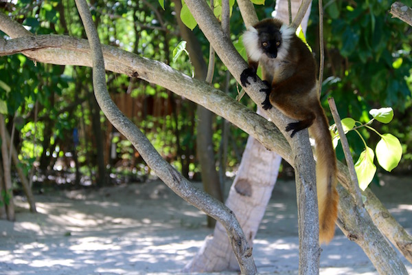 ¡Era hora de comer!, salimos del agua, teníamos preparar el almuerzo, una ensalada y una bandeja con diferentes pescados asados, un cuenco de arroz blanco. Al olor de la comida, se acercó hasta donde estábamos nosotros un lémur negro, hembra. ¡Recuerda!, no debes de darle comida, a los animales que te encuentres en la zona.