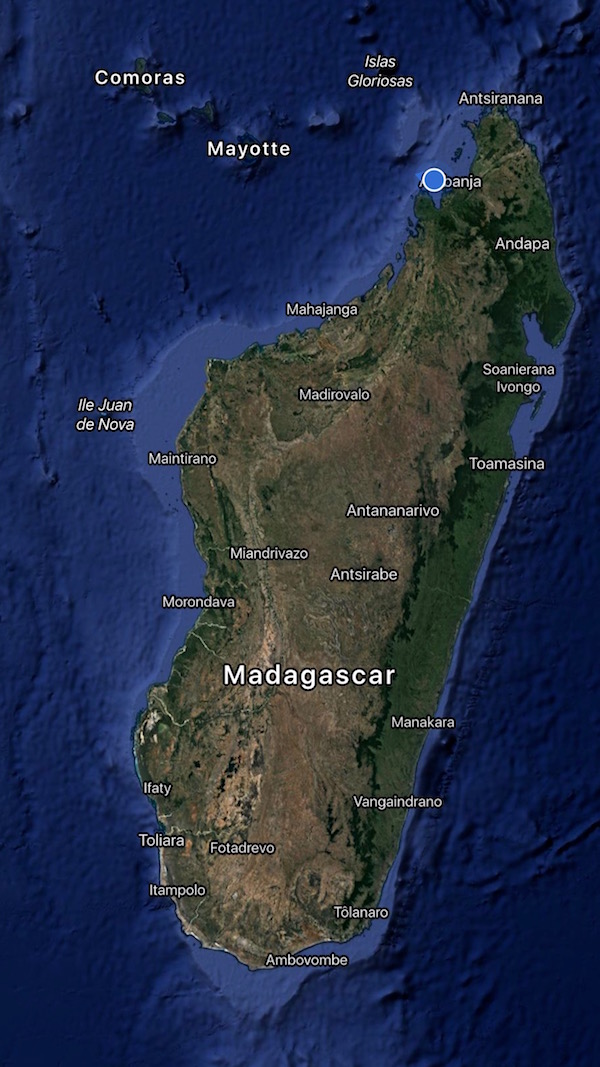 Situada a unos 20 km de Diego Suárez, allí es donde subimos en una goleta tradicional compuesta por una vela y un mástil, para navegar por el mar Esmeralda hasta la Isla de Nosy Suárez como su nombre indica, sus aguas son de color esmeralda y posee unos increíbles fondos marinos. En unos 45 minutos de navegación estábamos en el paraíso ¡Recuerda!, en la embarcación suele entrar bastante agua, debes llevar una bolsa hermética para guardar cámara fotográfica, y objetos que no se puedan mojar. ¡No olvides llevar!, crema solar y toalla. A la llegada hay que pagar una tasa por el circuito del mar esmeralda, en una taquilla que hay, para nacionales tiene un coste de 2.000 ariary malgache por cada uno (0,54 € aprox.) y para extranjeros es de 10.000 ariary malgache por persona (2,67 € aproximadamente).
