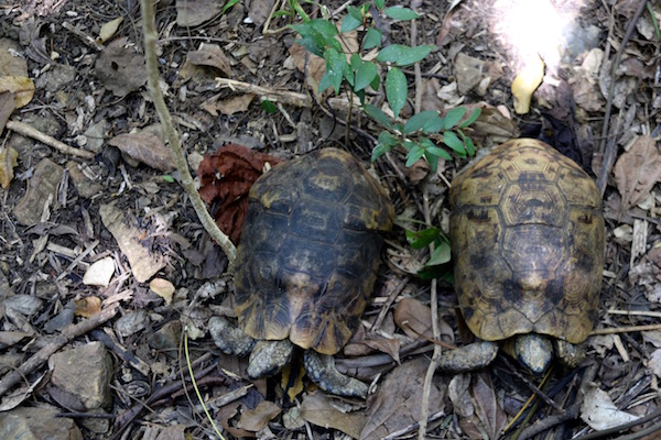 Nos acercamos a una zona donde hay unas tortugas terrestres que habitan en la isla, vimos a Carolina, una gran tortuga, más adelante también nos encontramos una pareja de tortuga, estas de menor tamaño.