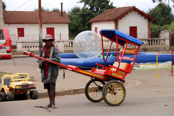 Los pousse-pousse, son carros tirados por personas, bici, o moto. Es uno de los transportes que menos nos gusta utilizar. Suelen usarlo mucho los malgaches para desplazarse por la ciudad, vamos para ellos es como un taxi.