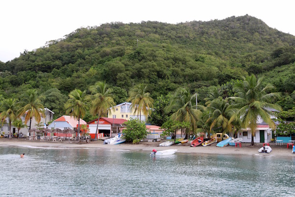 La primera parada que hicimos fue en Morne Fortune es una colina y zona residencial situada al sur de Castries. Donde obtuvimos estas fantásticas vistas panorámicas de la bahía de Marigot, tomamos unas fotografías del lugar y volvimos a subir a la furgoneta, la lluvia nos había abandonado por el camino, pudimos ir contemplando la selva tropical que alberga la isla hasta detenernos en Anse La Raye es un pueblo de pescadores con casas coloridas, siendo la calle principal Front Street, a lo largo del Paseo Marítimo nos encontramos una gran cantidad de puestos de artesanía, recuerdos, fruta, etc., el pequeño embarcadero que tiene y la playa de arena oscura que posee.