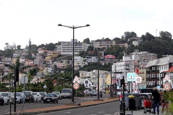 Aterrizamos en el Aeropuerto Internacional de Martinica Aimé Césaire, en Fort de France. Bajamos del avión, pasamos el control de aduana, que simplemente fue mostrar el pasaporte al policía, nos fuimos hasta la cinta para coger el equipaje, una vez listos, nos acercamos hasta donde estaban unas chicas con las pancartas de la naviera MSC, le colocamos a las maletas las etiquetas identificativas que MSC nos facilitó en nuestra reserva, salimos del aeropuerto y subimos en el autobús que pone MSC para sus clientes, nos llevó hasta el Puerto Marítimo de Fort de France (Martinica).