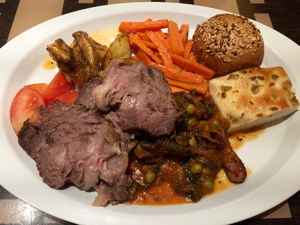 Fuimos a cenar al Restaurante Buffet L’Africana y Zanzíbar, situado en el puente 14, abierto para cenar desde las 18:30 h, hasta las 21:30 h. La comida que ofrece es tipo buffet, había carnes en diferentes salsas, ternera al horno al corte, pizzas, frutas, verduras, pasteles, infusiones y cafés. Eso sí, en este crucero el pescado ha sido casi inexistente, algunos días hemos visto tilapia, carpas en salsas, salmón, algunos calamares fritos y poco más.