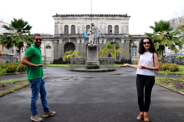 Tomamos unas fotografías en la zona y continuamos hasta llegar al Memorial Acto o Centro Caribeño de Expresiones (ACTe) y de Memoria de la Trata de los Esclavos, localizado donde estaba el lugar de la antigua fábrica azucarera de Darboussier. Este centro abrió a las visitas en mayo del 2015. Pudimos tomar unas fotografías de las exposiciones exteriores, en el interior del edificio está totalmente prohibido tomar fotografías y grabaciones. Este centro cuenta con un espacio de 1.700 m² dedicado a la exposición permanente a la historia de la esclavitud desde el pasado hasta la actualidad, estando agrupados en seis periodos históricos; Las Américas, hacia la esclavitud y la trata de negros, el tiempo de la esclavitud, el de la abolición, post abolición y segregación, y hoy en día. Hay una zona de 700 m² asignada a exposiciones temporales de expresiones artísticas contemporáneas, un espacio a la investigación genealógica, sala de congresos y de artes vivas, una biblioteca de investigación, una mediateca, una tiendas y dos restaurantes. La entrada tiene un coste de 15 € por persona, la entrada reducida cuesta 10 € por cada uno. Las familias compuestas por dos adultos y de dos a cinco niños como máximo pagarán un total de 45 €. El pase anual vale 35 € (visitas ilimitadas a exposiciones permanentes) Cuando se adquiere el ticket te dan una audioguía (francés, criollo, inglés y español) hay que dejar todas las pertenencias en una taquilla bajo llave. El horario de visitas es de martes a sábados de 9:00 h a 19:00 h, el último pase se realiza 1 h y 30 minutos antes del cierre. Aunque era domingo, estaba abierto, porque el lunes era festivo en la ciudad. Aquí os dejamos el teléfono de contacto es: 0590-251-600. La dirección es Calle de la Chapelle 552.