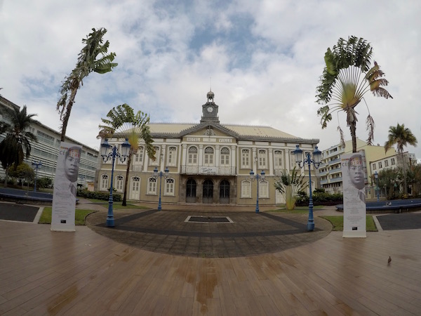 Regresamos al centro, no había demasiado ambiente en la zona, las calles continuaban desiertas, pasamos por la Calle Achille René Boisneuf está también considerada como una de las calles más antiguas de Pointe á Pitre, antiguamente era llamada “Calle Grande”Achille René Boisneuf, es el límite entre el barrio comercial de la ciudad y los muelles, en esa misma calle vimos desde el exterior el edificio de Ancienne Mairie inaugurada en 1885, el antiguo ayuntamiento, se puede ver su diseño es de estilo criollo, con dos niveles y encima las cumbres, vivienda de estilo neoclásico, típico de las Antillas.