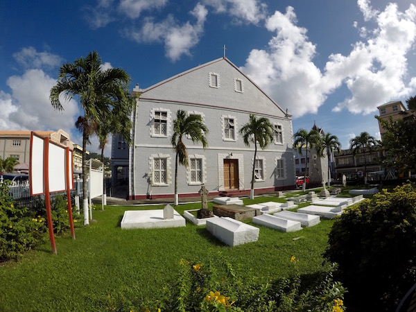 Terminamos la visita y nos dirigimos hasta el centro de la ciudad, a visitar la Catedral Anglicana de San Jorge, levantada en 1820 en el siglo XIX, sobre las ruinas de una iglesia que fue destruida por un huracán en 1780. El templo que hoy podemos ver es de arquitectura georgiana, es la sede de la diócesis de las Islas de Barlovento. La entrada es gratuita, aunque se pide dejar una donación. Se localiza en la Calle Grenville.