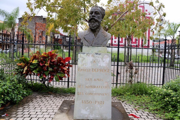 La escultura al gobernante general Adolphe Félix Éboué fue el primer gobernador de piel negra de la colonia en 1935, trabajo en el desarrollo para mejor la vida de los más pobres y desfavorecidos.