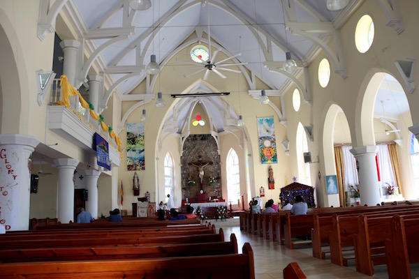 Frente a la playa, al otro lado de la carretera principal, se encuentra la Catedral de San Patricio, templo católico romano, es una de las dos catedrales que hay en la isla. Construida en 1848, se vio incendiada en 1897, teniendo que ser edificada nuevamente y acabada en 1899 y consagrada en 1903. Hoy en día es la sede de un centro de formación católico. No pudimos acceder a su interior porque se encontraba cerrada.