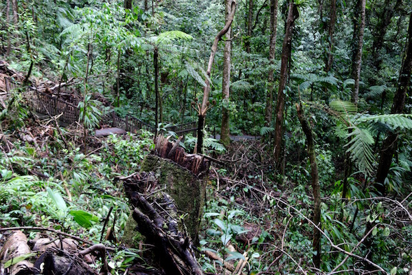 El Parque Nacional Guadalupe fue fundado en 1970, tiene una superficie de 17.300 hectáreas, se encuentra en el extremo sur de la isla de Basse-terre, es una selva tropical donde hay una gran cantidad de especies vegetales como de fauna, donde se puede realizar diferentes rutas de trekking, llegar hasta el volcán de La Sofriere, la cascada Carbet es una caída de agua formada por tres descensos de agua, etc. Las rutas están señalizadas y marcan el tiempo estimado en poder llevarlas a cabo, el suelo es irregular, hay subidas, bajadas, escalones, escaleras, etc., se debe llevar un calzado cerrado y que no resbale, un impermeable, suele llover bastante en la zona. Pudimos apreciar como en algunas zonas las barandas, escalones eran inexistentes o presentado un aspecto de roto, debido al último huracán María que hubo en la zona. No recomendamos la visita para personas que tenga una movilidad reducida. La entrada al parque nos costó por adulto 2,30 € por persona, para niños hasta 12 años pagan 1,20 € por cada uno. Las familias compuestas de 2 adultos+2 niños como edad máxima 12 años, pagan un total de 4,50 €. El pase anual para adulto cuesta 6 €. El horario de visitas es de lunes a domingo de 8:00 h a 16:30 h. En el parque, a pocos metros de la taquilla donde se adquieren los tickets, hay unos wc, eso sí, papel higiénico no tienen. Terminamos la visita en el lugar, en fin hicimos un trekking hasta llegar a la cascada de Carbet, el parque es imposible de verlo al completo en un día. ¡Es inmenso!
