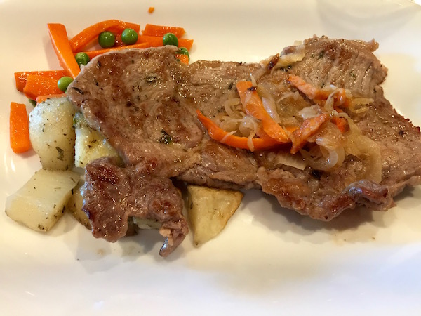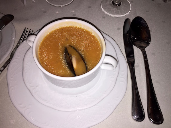 A las 21:00 h fuimos a cenar al Restaurante Red Velvet, es cierto que teníamos hambre como el almuerzo fue tan ligero, como entrante pedimos una sopa de marisco, de plato principal, un medallón de ternera y de postre un plato de fruta. Bueno, esto fue por ese día.
