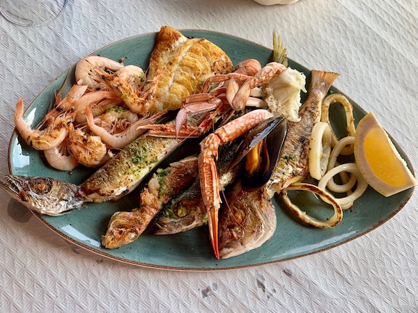 Decidimos almorzar en el Chiringuito Casa Emilio donde nos pedimos una ensalada especial de la casa (tomate, aguacate, pimientos asados, huevo, atún y cebolla) una tapa de cazón frito, una paella de marisco, una parrillada de pescado, de bebida dos refrescos, de postre un café con leche y otro solo. Pagamos un total de 61 €. El restaurante tiene mucha demanda en la zona, os aconsejamos reservar mesa. Os dejamos el teléfono de contacto: (+34)958349432. Abierto todo el año de lunes a domingo de 11:00 h a 17:00 h y de 19:30 h a 23:30 h. La web: https://chiringuitocasaemilio.es La dirección es Paseo Marítimo Salobreña.