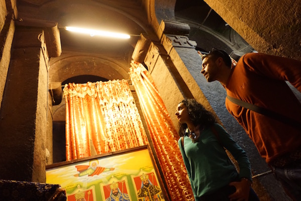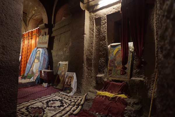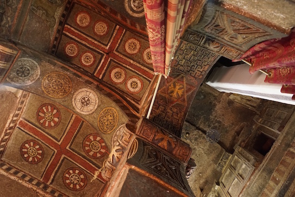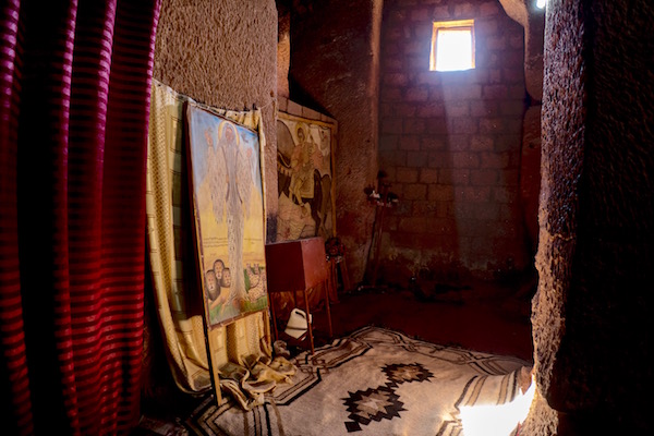 Bet Golgotha y Bet Mikael son dos templos iguales, también se les conoce como “Bet Deble Sina”, siendo los únicos que poseen pilares cruciformes. Primero se visita Best Mikael y luego la otra. En bet Golgotha, se encuentran algunos de los mejores ejemplos tempranos del arte cristiano etíope. ¡Recuerda!, en Bet Golgotha no está permitido el acceso a mujeres, está prohibido, por lo cual fue Sergio, el que accedió a él y tomó estas fotografías para que vosotros andorreros y yo, nos hagamos una ideal del lugar.