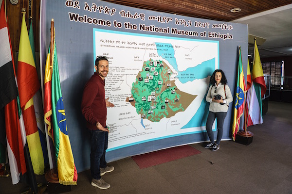 El Museo Nacional de Etiopía en él se encuentra el esqueleto de un Australopithecus Afarensis (Lucy) fue hallado en 1947 en Hadar, en las riberas del Awash, tiene más de 3,5 millones de años, considerado el más antiguo encontrado hasta la actualidad. Aunque los verdaderos restos de Lucy se conservan en los archivos del museo. También vimos una colección de arqueología y de la historia de Etiopía. La entrada nos costó 10 birrs por persona (0,32 € aprox.) El horario de visitas es de lunes a domingos de 8:30 h a 12:30 h, de 13:30 h a 16:30 h. Se sitúa en King George VI St.