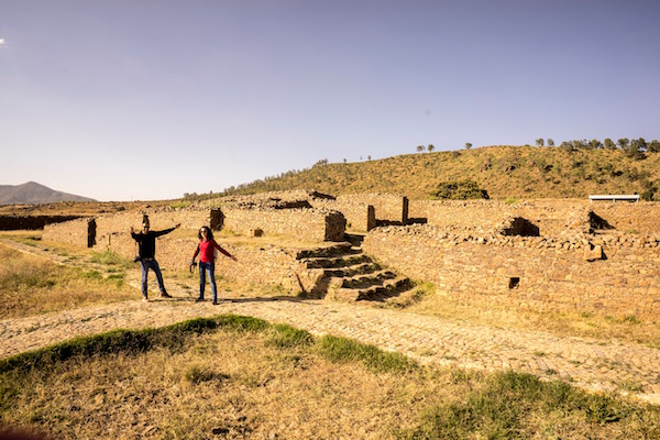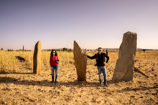 Comenzamos visitando el Campo Norte de Estelas donde se encuentra la Tumba de la Puerta Falsa, el Mausoleo, La Gran Estela, la Tumba de Nefas Mawcha, la Estela del Rey Ezana, la Estela de Roma, el Museo Arqueológico, la Iglesia de Enda Iyasus, la Tumba de los Arcos de Ladrillo, la Estela Única con el consuelo de Casa.
