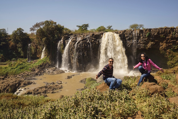 Vino a recogernos hasta el hotel, la empresa Farangi Tour, que nos llevó hasta las Cataratas del Nilo Azul. Estas cataratas también son conocidas como Tis Abay, significa en amárico (agua humeante) situada a unos 30 km de Bahir Dar, tiene una altitud de 45 a 37 metros, teniendo un caudal hasta 400 metros de ancho durante la estación de lluvias (entre junio y septiembre). En 2003 se construyó una presa de producción eléctrica cerca del lugar, esto ha hecho que el caudal de las cataratas hayan diminuido sobre todo en la estación seca y cuando la central está en funcionamiento. Para el 2017 se va a inaugurar una presa cerrando la presa Titissat Selambus, esto hará que las aguas del Nilo Azul vuelvan a tener todo su esplendor.