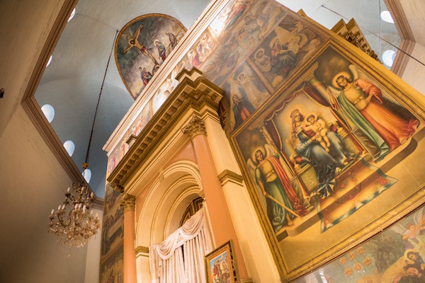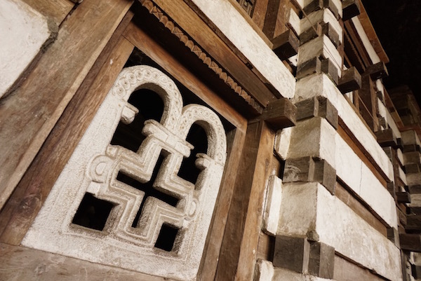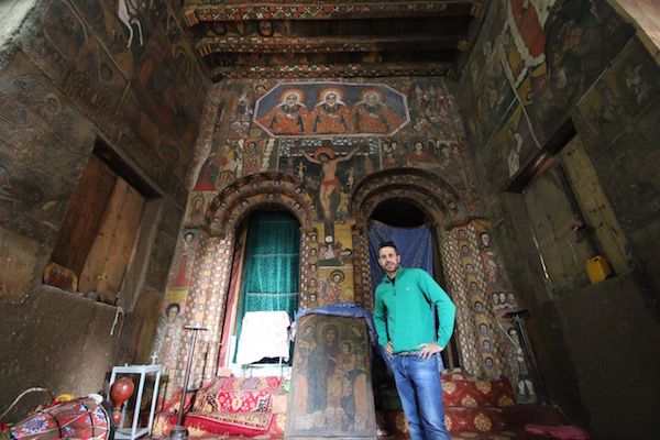 Sergio se acercó para entrar hasta la Iglesia Vieja de Santa María de Sion es un templo rectangular, fue levantado en 1665 por el emperador Fasilidas, en el interior se pueden ver murales, pinturas, etc. El acceso es solo para hombres, por lo cual yo me tuve que quedar en la calle y Sergio entró e hizo estas fotografías para que yo y vosotros andorreros nos hagamos una idea del lugar. ¡Recuerda!, para entrar al templo hay que descalzarse, no llevar puesto sombrero o gorra. La entrada a este templo está incluida en el ticket a la Iglesia Nueva de Santa María de Sion.