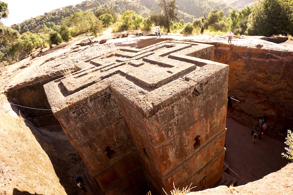 Al norte de Etiopía está la antigua Roha, siendo ahora Lalibela, considerada como el Jerusalén del África, o el Jerusalén Negro es una ciudad Santa, lugar de peregrinación que tiene un total de doce iglesias talladas en piedra excavadas bajo la superficie de la tierra, siendo levantadas en el siglo XII y XIII bajo el mandato de la dinastía Zegüe. Se cree que fueron edificadas ocultándolas bajo el nivel del suelo, para evitar invasiones musulmanas, frecuentes en la época. La iglesia de la Lalibela está dividida en dos grupos por el río Jordán, pero están comunicadas entre sí por pasadizos y túneles. Fueron declaradas Patrimonio de la Humanidad por la Unesco en el año 1978. Siendo un lugar poco turístico actualmente, así como lugar sagrado y de peregrinación cristiana, donde tuvimos la oportunidad de ver a los ermitaños orando, vestidos con sus túnicas de color blanco.