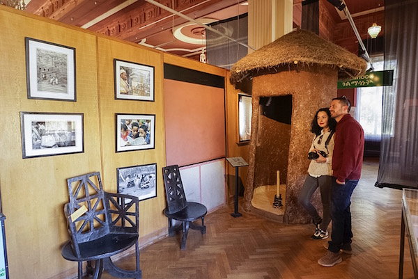 Salimos para ir a visitar el Museo Etnológico es el único museo de este tipo que cuenta el país de Etiopía, fue fundado por la fundación de Instituto de Estudios Etíopes con donaciones públicas, se encuentra en una facultad de la universidad y es gestionado por el Instituto de Estudios Etíopes de la Universidad de Adís Abeba. La sala principal está situada en la primera planta, dividida en dos secciones, una dedicada a exhibiciones temporales y la otra muestra temática de ritos de iniciación y el ciclo de la vida. En la segunda planta acoge una colección de arte tradicional, pinturas religiosas y de murales, cruces, etc. Este inmueble fue el antiguo palacio del emperador Haile Selassie, último rey de Etiopía, tuvimos la oportunidad de hacernos una idea de como fue la vida de la realeza etíope. La entrada por adulto nos costó 100 birrs (3,15 € aprox.) para estudiantes es de 50 birrs por cada uno (1,58 € aproximadamente). El horario de visitas es de martes a viernes de 8:30 h a 12:30 h, sábados y domingos de 10:00 h a 18:00 h. La dirección es Universidad de Adís Abeba, Algeria street.