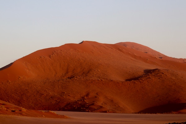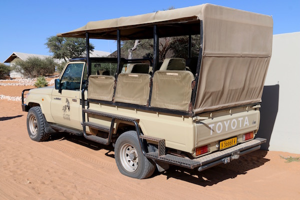 Tocaba el momento de irnos hasta la habitación, para descansar, porque a la mañana siguiente teníamos un gran madrugón. Sonó el despertador a las 5:00 h de la madrugada, nos arreglamos, pasamos por recepción para coger el picnic que nos habían preparado para el desayuno. A las 5:30 h subimos en el 4×4. El camino era sin asfalto, los coches pasaban a toda velocidad. El ruido es incesante hasta llegar a las Dunas de Sossusvlei. Por el camino vimos springbok, oryx, avestruces, etc.