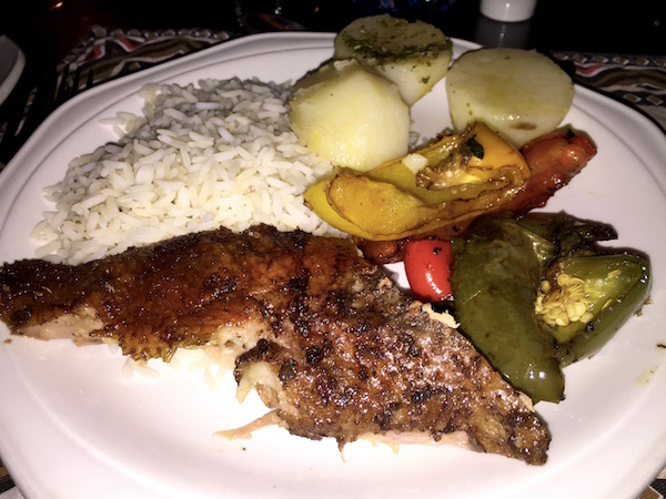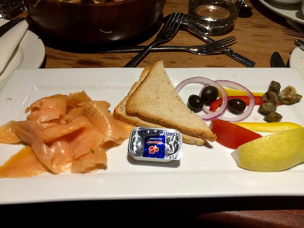Cenamos en el Restaurante The Tug está considerado como uno de los mejores de la zona, sirven desde pescados, carnes, pastas, etc. Como entrante para cada uno elegimos un plato de salmón ahumado y plato para compartir de ensalada de frutos del mar, de bebida, una botella de agua mineral y una coca cola. Pagamos unos 406 dólares namibios (25,03 € aproximadamente) a este precio, tuvimos que añadirle un 10% la propina que hay que dejarle al los camareros. El total la cuenta fue 446,61 dólares namibios (27,54 € aproximadamente). Situado en A. Schad Promenade, Molen Road, Jetty Área. Regresamos caminando hacia el hotel, os podemos decir que es totalmente seguro caminar y pasear por la ciudad, nosotros no nos sentimos ni observados e inseguros en ningún momento.
