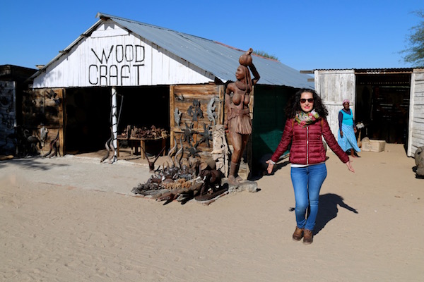 Al día siguiente nos levantamos, bajamos a desayunar y una vez acabada la comida, fuimos a por el equipaje, hicimos el check-out. A las 8:40 h de la mañana, subimos en una furgoneta de la empresa Kobo safaris, para salir por carretera hacia el Parque Nacional Etosha. Por el camino hicimos una parada en Okahandja, para visitar el Mercado de Artesanía de Mbangura es una calle llena de pequeños establecimientos donde encontrarás una gran variedad en productos artesanales del país. ¡Recuerda!, el regateo está presente, te pedirán como cinco veces más el valor del producto.
